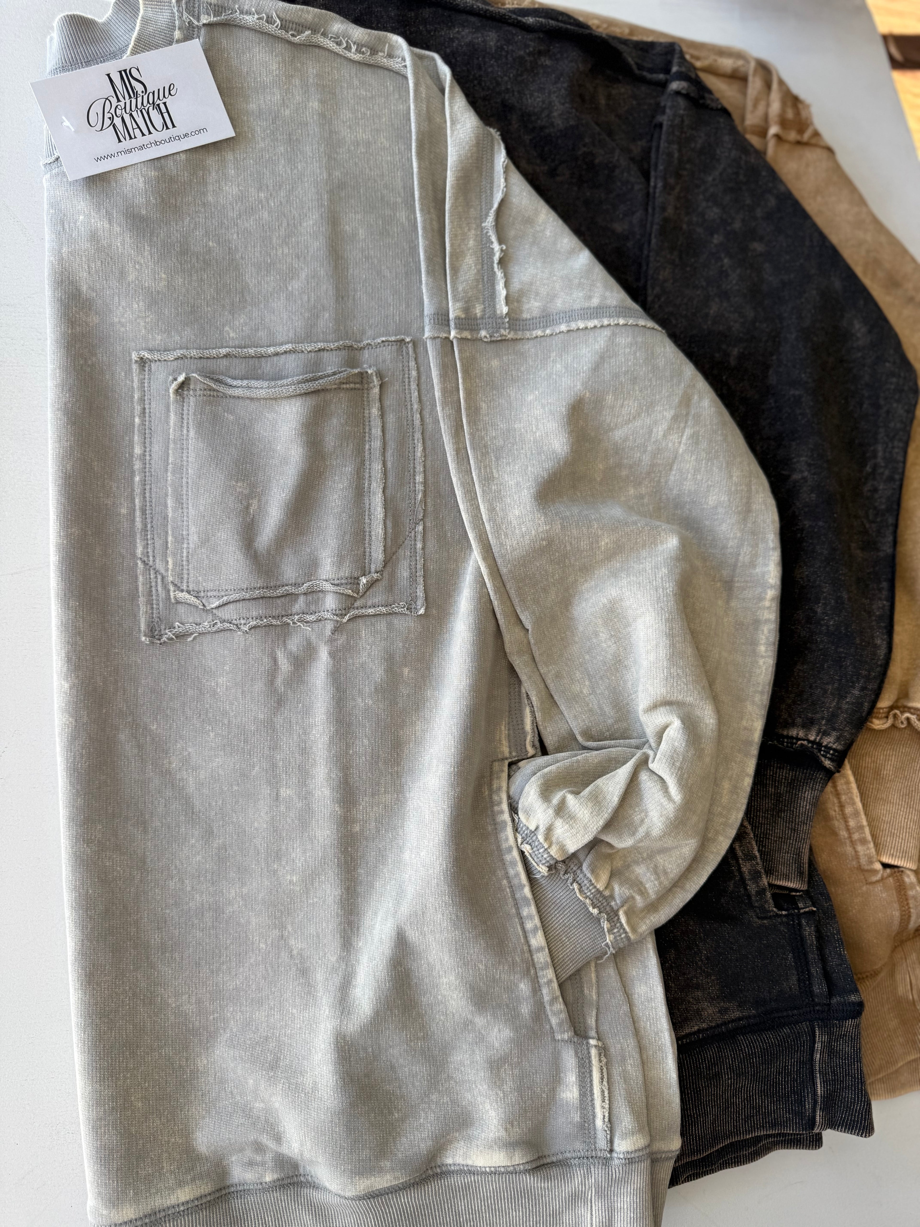 Washed Ribbed Pocket Slouch Tee - Sleet